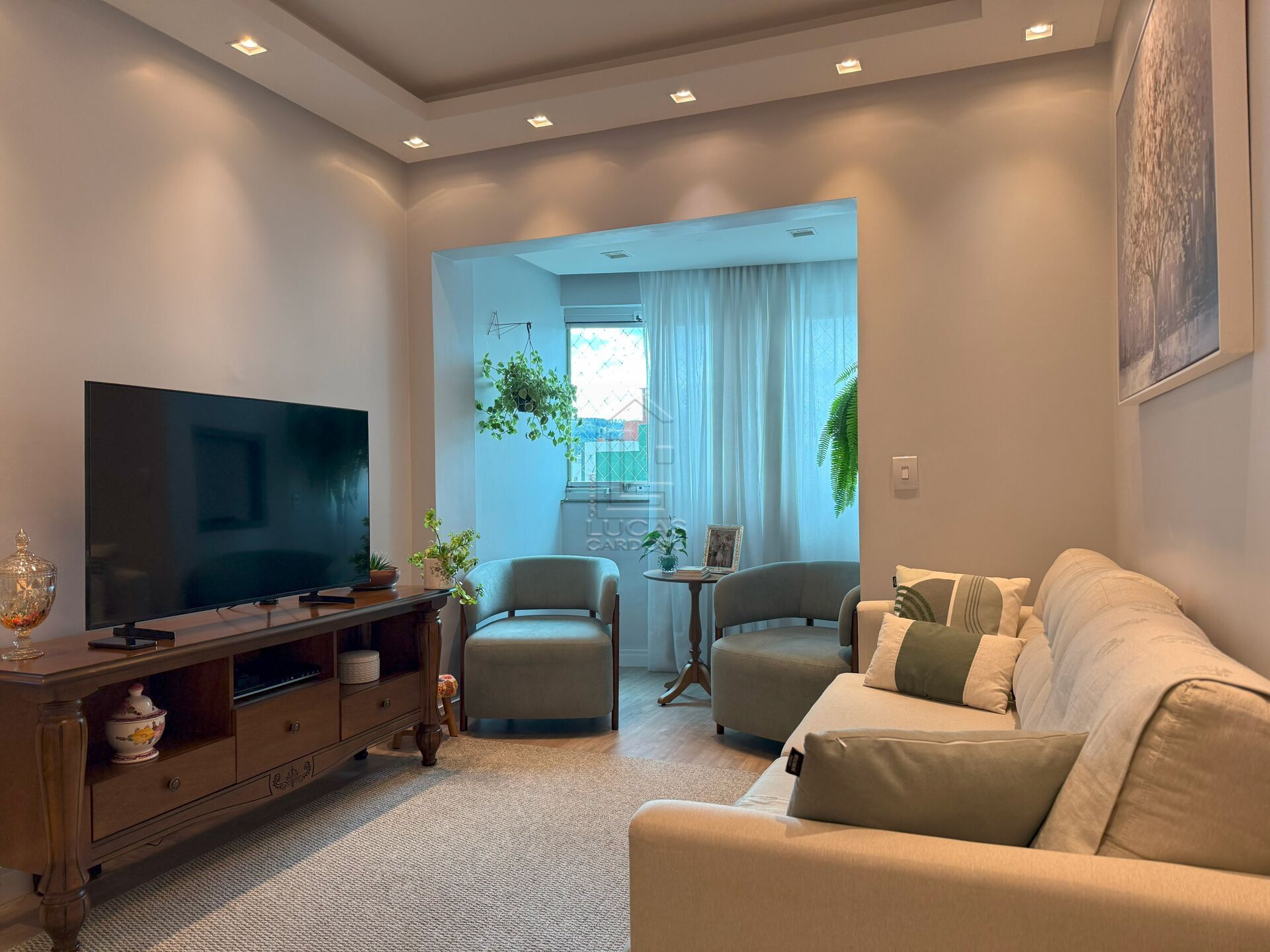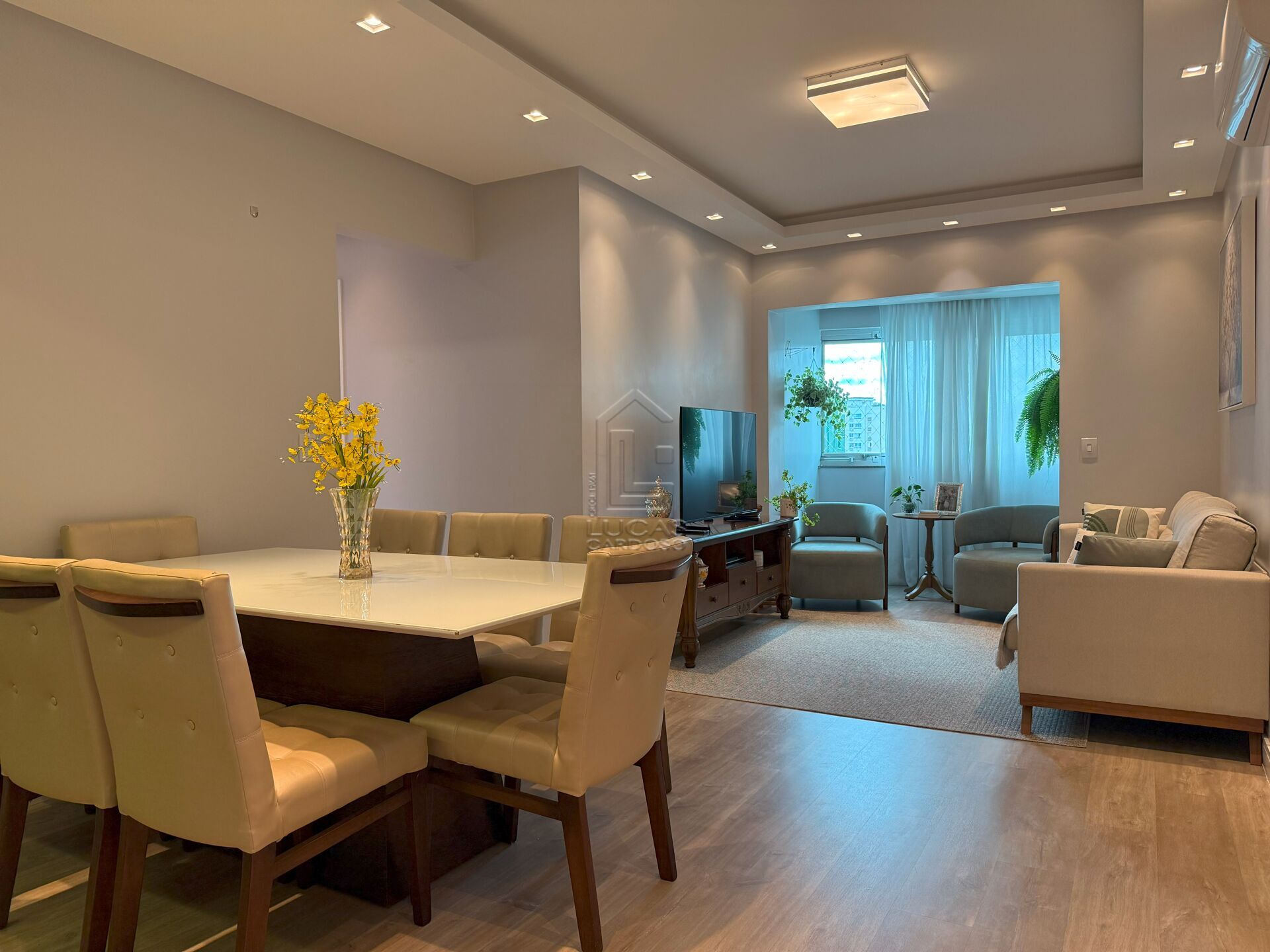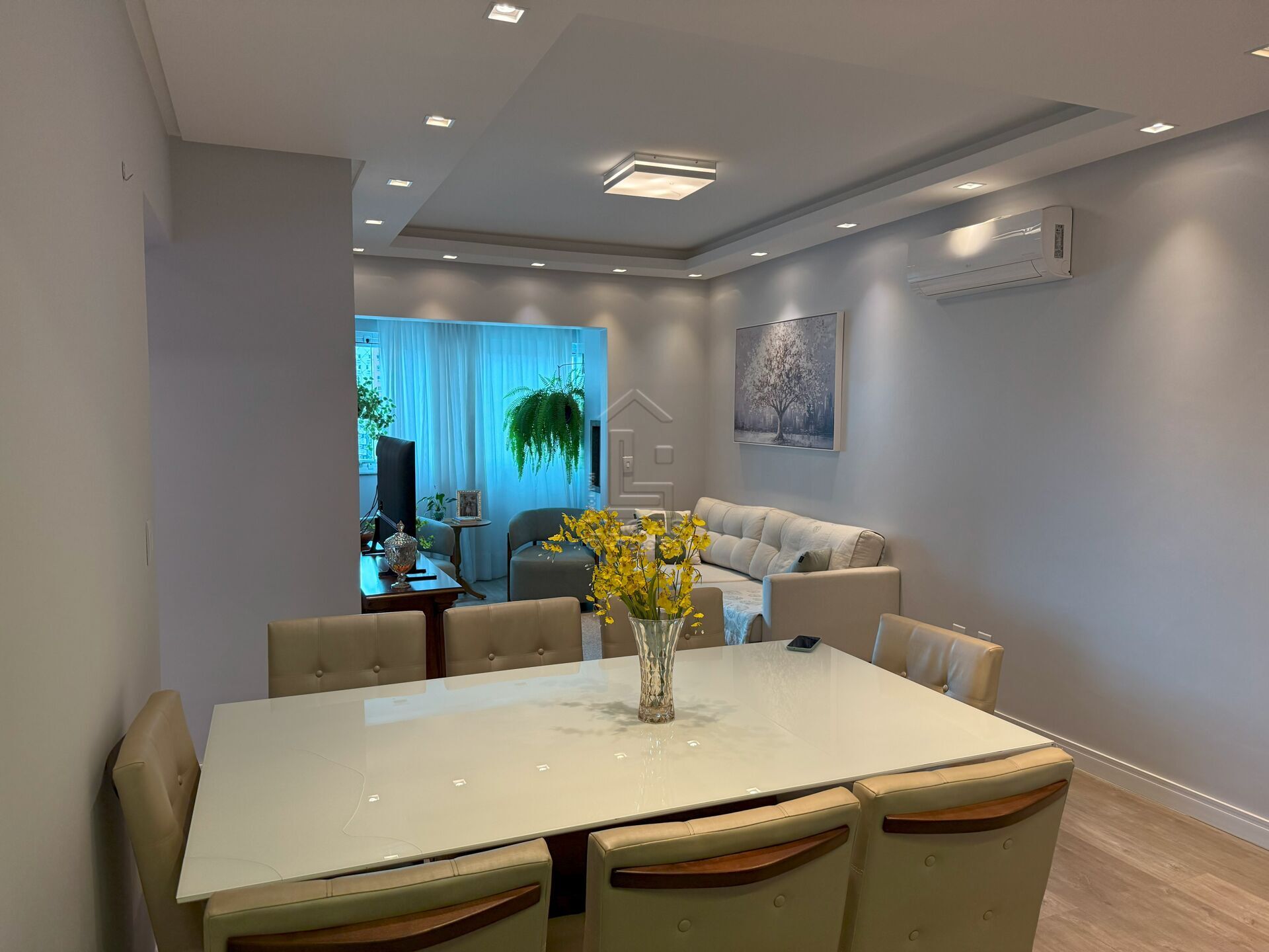 Rebaixo em gesso e piso laminado.