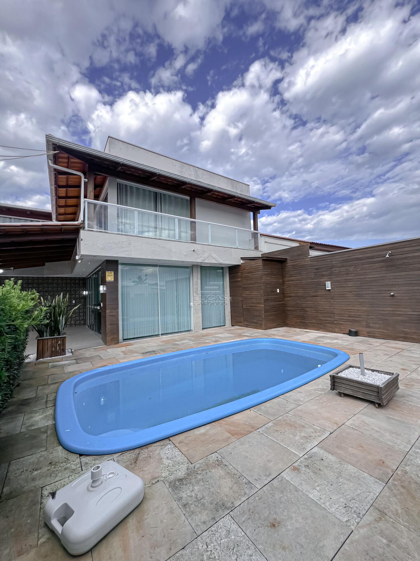 Área externa com piscina + banheiro de apoio, perfeita para curtir com a família.