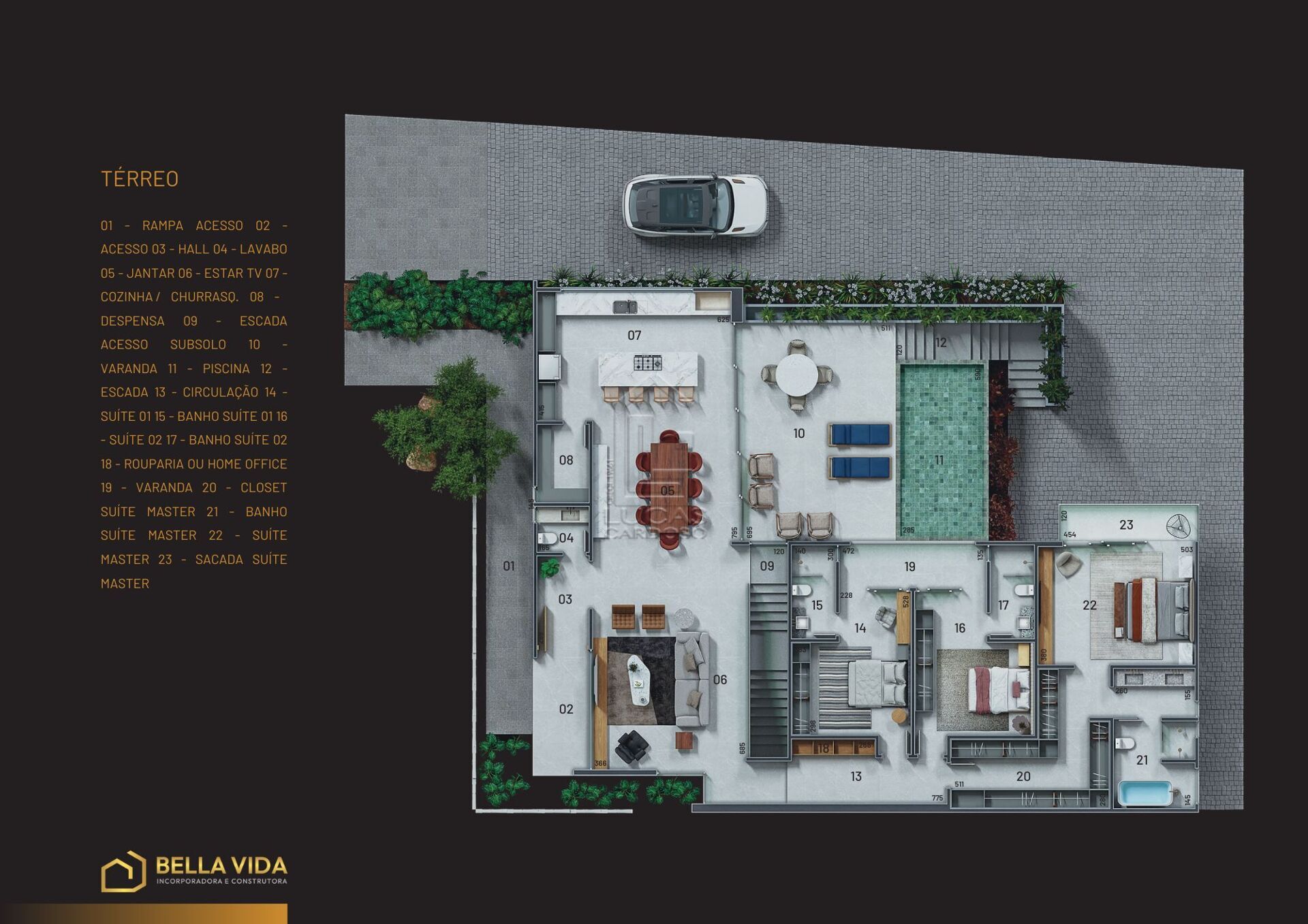 3 Dormitórios, sendo 3 suítes4 Banheiros2 Vagas1 Closet1 Sala de TV1 Cozinha1 Sala de jantar1 Sala de estar1 Área de serviço