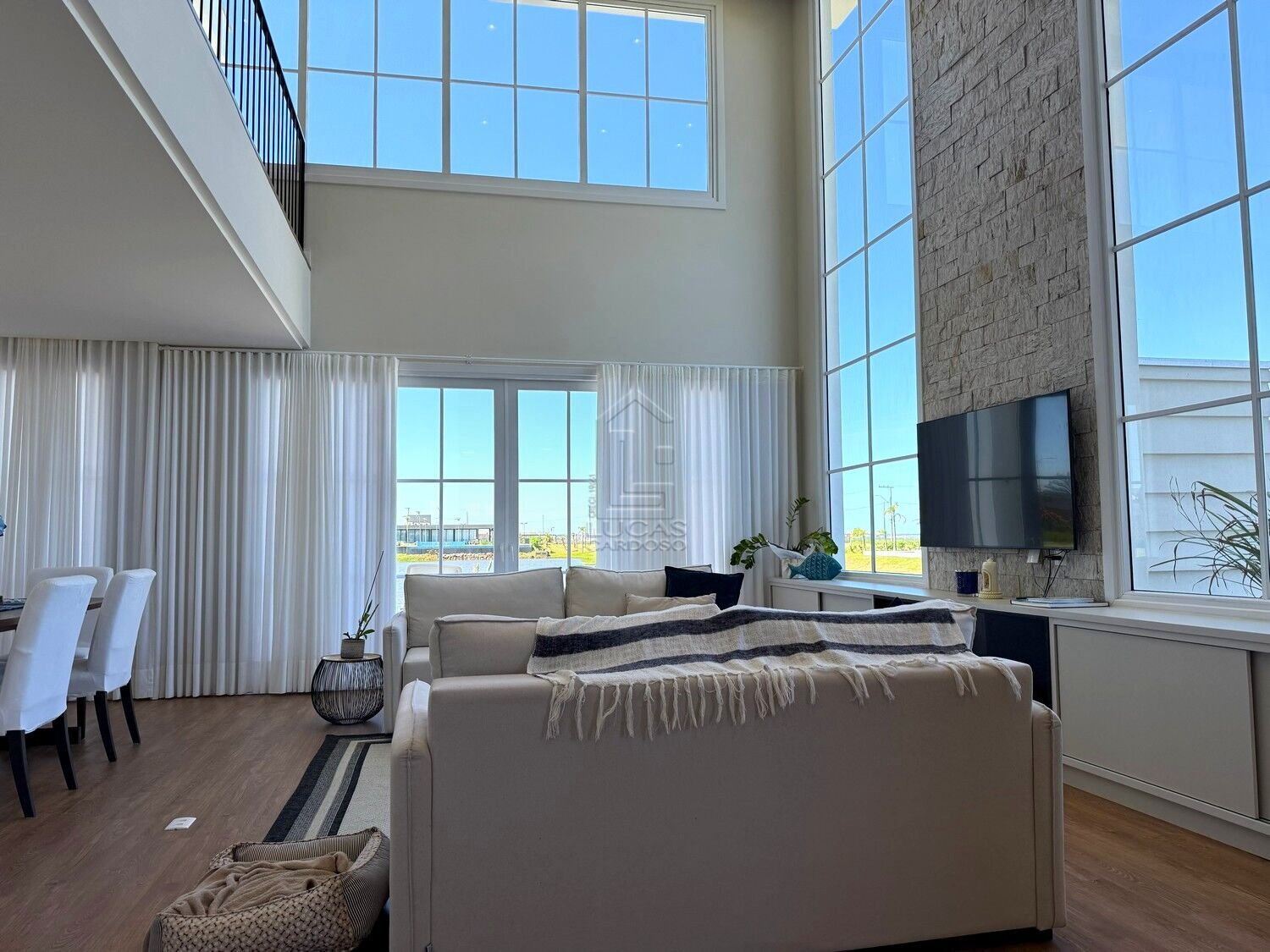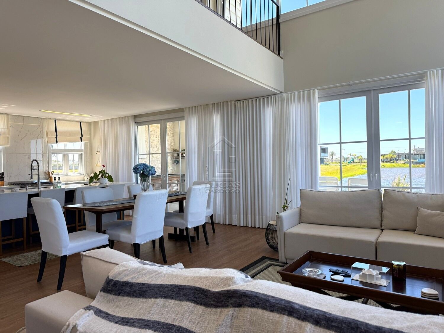 Living integrado com pé-direito duplo, proporcionando amplitude e iluminação natural